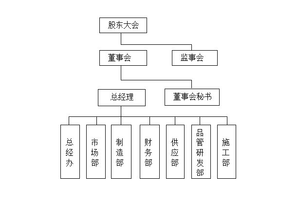 公司组织机构与实际运营的规模,状况匹配,按照公司法的要求和精简效能的原则构建,设股东会、监事会、董事会、董事会秘书,下设财务、采购、生产、销售、办公室、技术开发、施工管理、质量控制等部门。